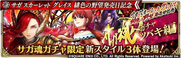 震えるがいい!(良い声) 2022年7月20日より、サガスカ緋色の野望発売記念ガチャが開催されます。 ラインナップはツバキ、クミ、チアーゴ。 クミとチアーゴが初登場です。 いやぁチアーゴ様は待ち望んでいたので嬉しいですね。 絶望せよ!(天井) SSツバキ (... -