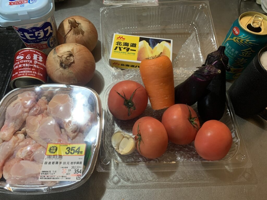 というわけで最近週1で作る、水無し固形ルウ無しの手羽元バターチキン夏野菜カレーでも載せておきます。