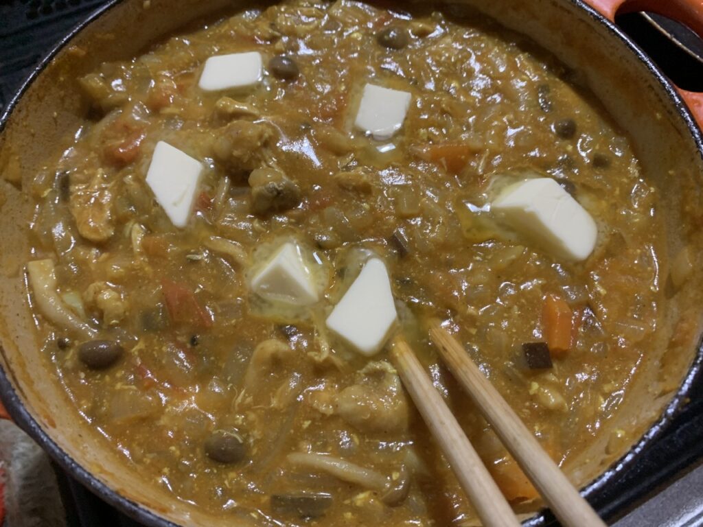 風味が飛んでしまうのでカレー粉やヨーグルトやバターは最後の方に入れていますが、マイルドな味が好きな人は最初から入れてガッツリ煮込むのも良いと思います。