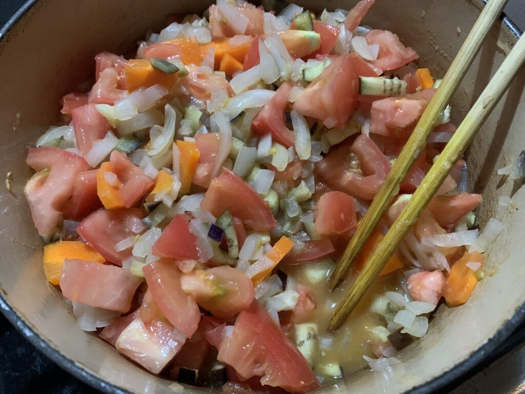 水を入れなくても野菜からの水分で浸るかと思いますが、足りなければ少し水も足しましょう。