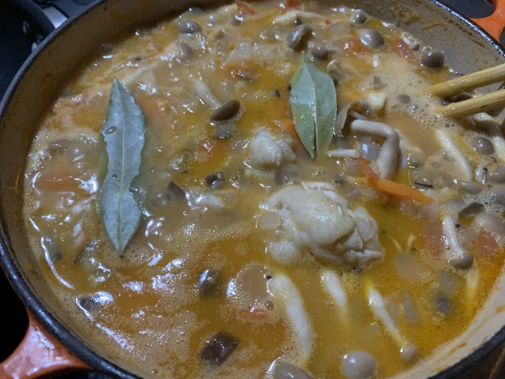 鍋に野菜と肉とコンソメと、あればローリエを突っ込んで好きなだけ煮込みます。