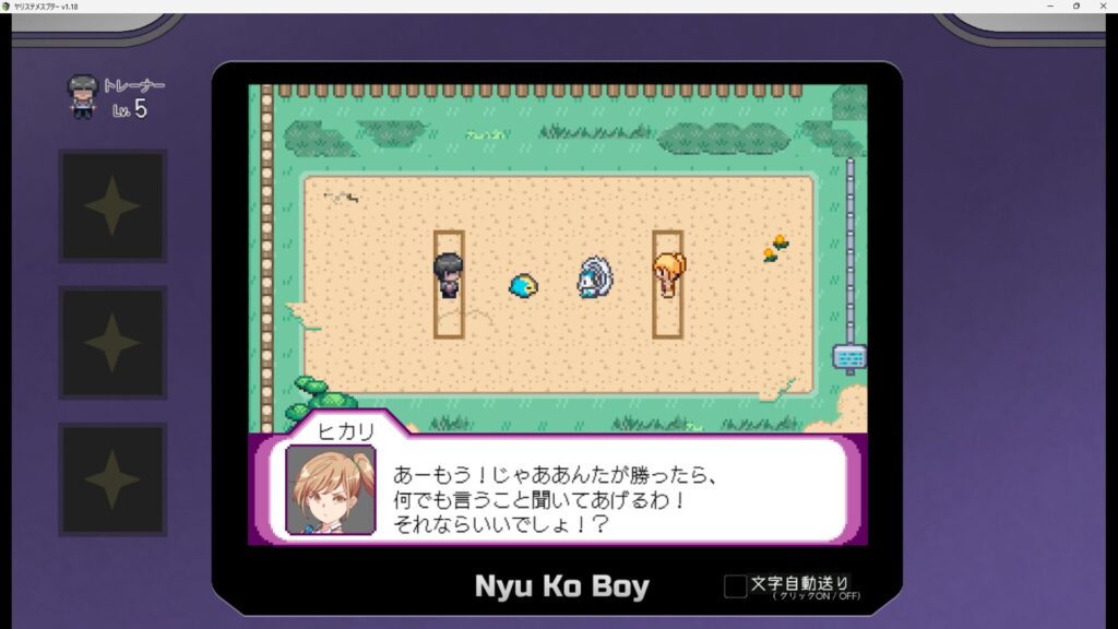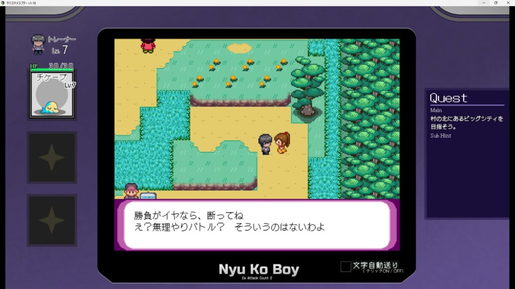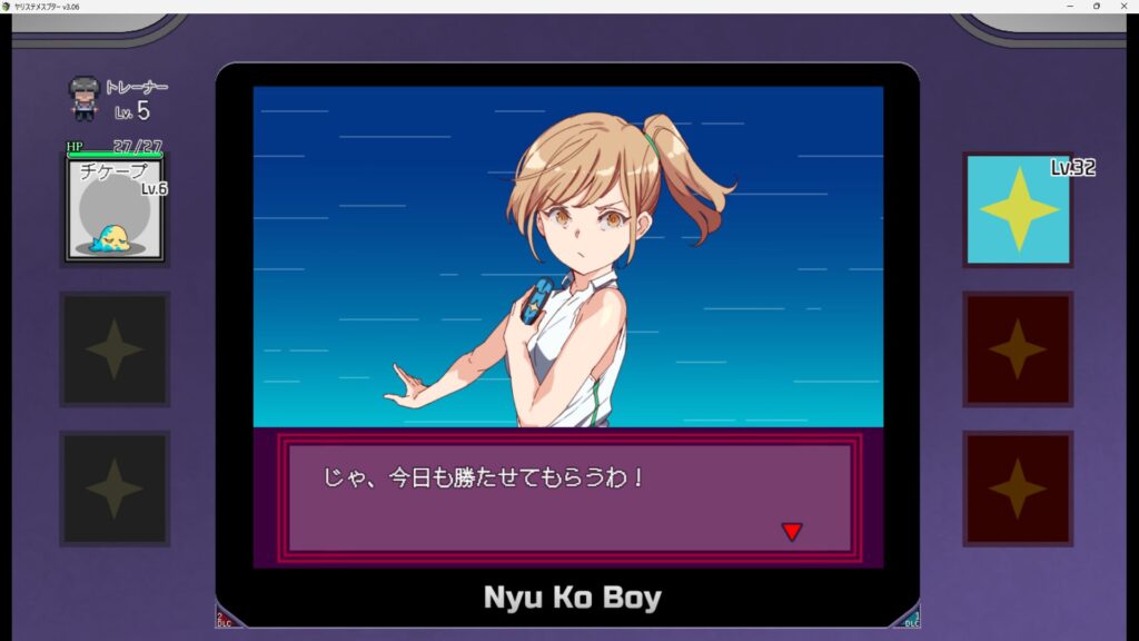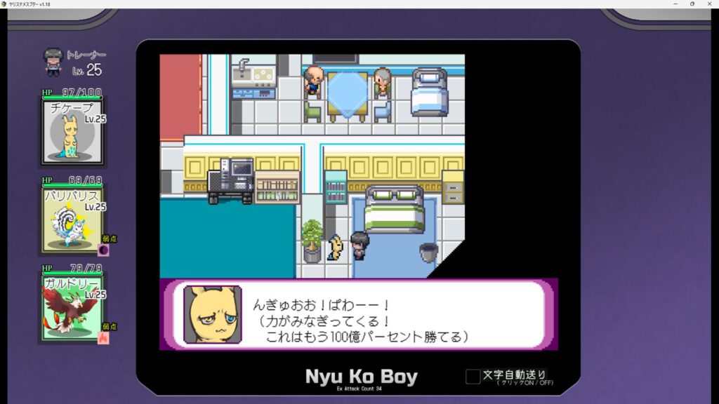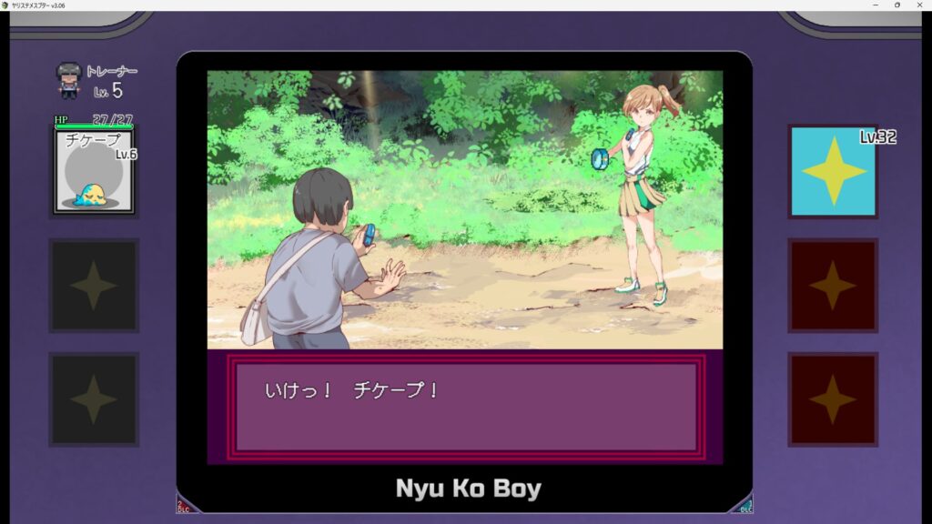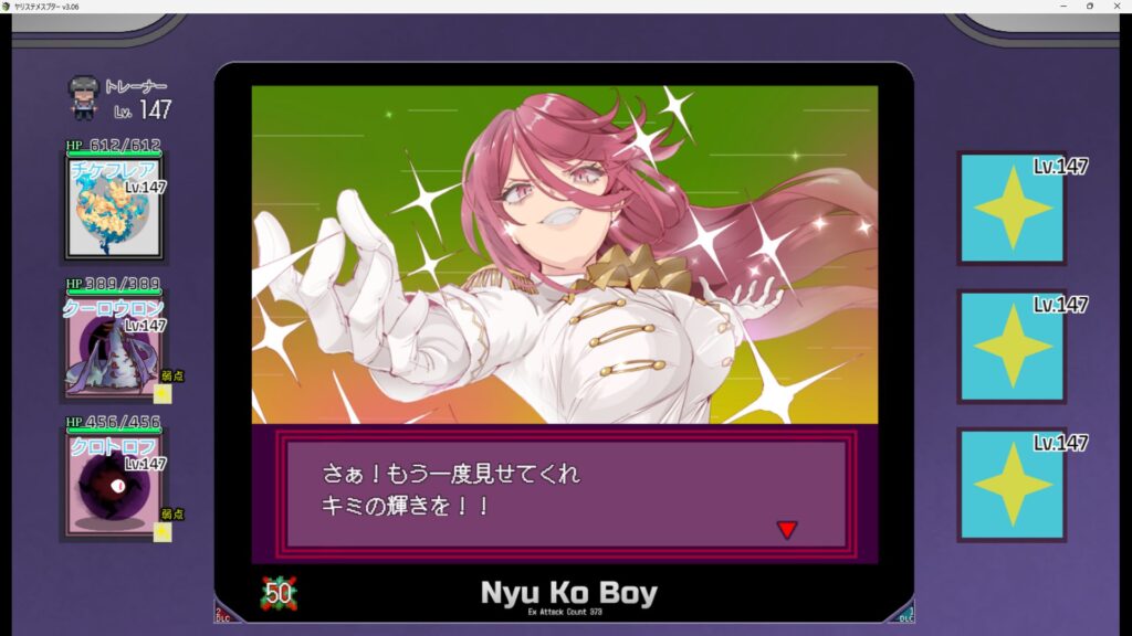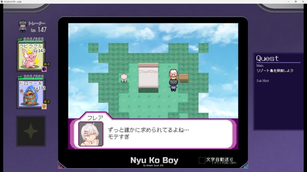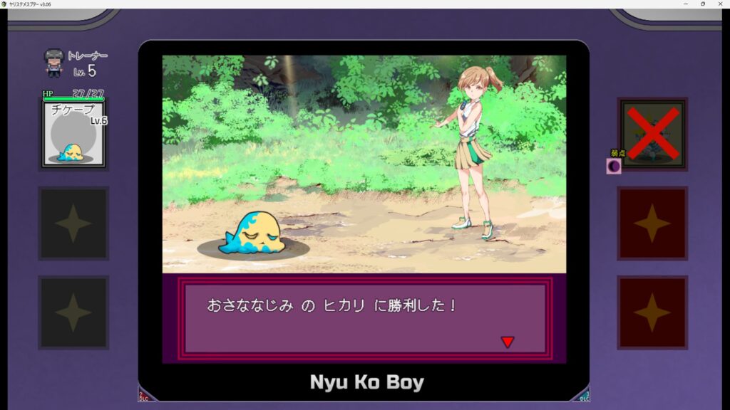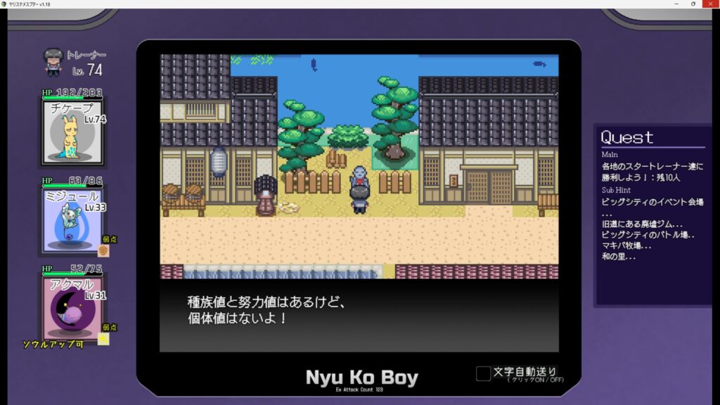 ストーリー進行のヒント、イベントシーンを観るためのヒント、ヤリモン図鑑を埋めるためのヒント(野生ヤリモンの出現場所情報)が備わっているので、Webの攻略を一切見なくても少し頭を捻ればゲーム内情報だけで全要素コンプリートが可能です。達成状況が確認できるのでお漏らしもありません。