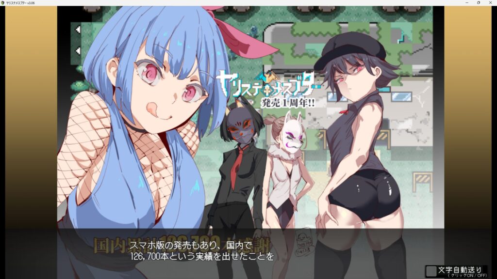 で、このヤリステメスブターですが、とんでもない売り上げを記録しており、なんと同人ゲームにしては脅威の12万本超え。4,000円もするのに、ですよ。