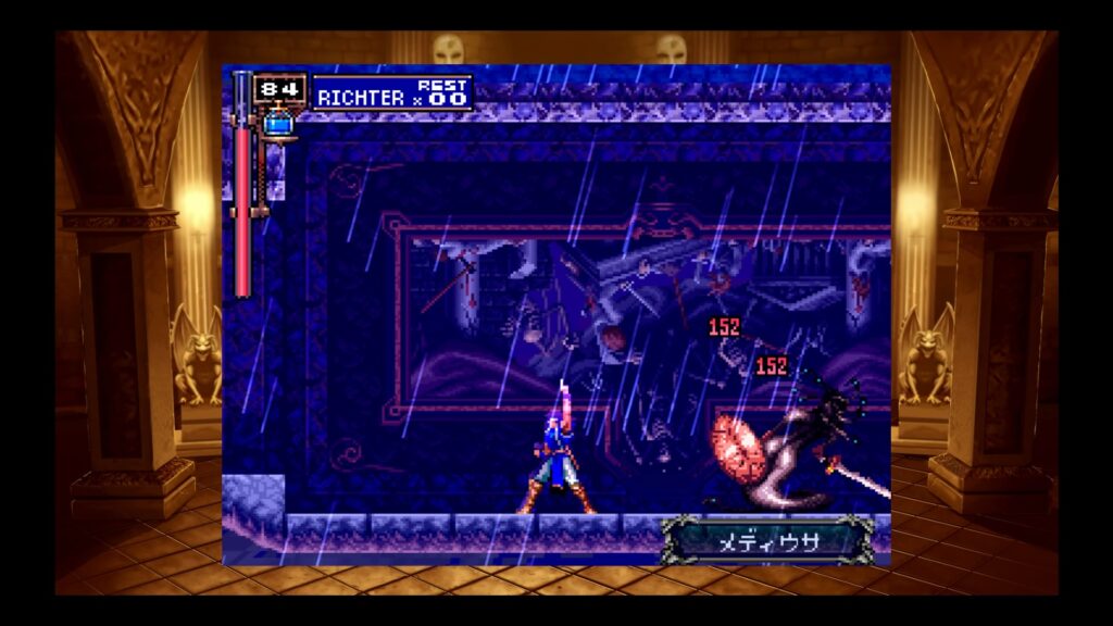 ゲームクリア後、New Gameでプレイヤー名を「RICHTER」とするとリヒターモードでプレイ可能。