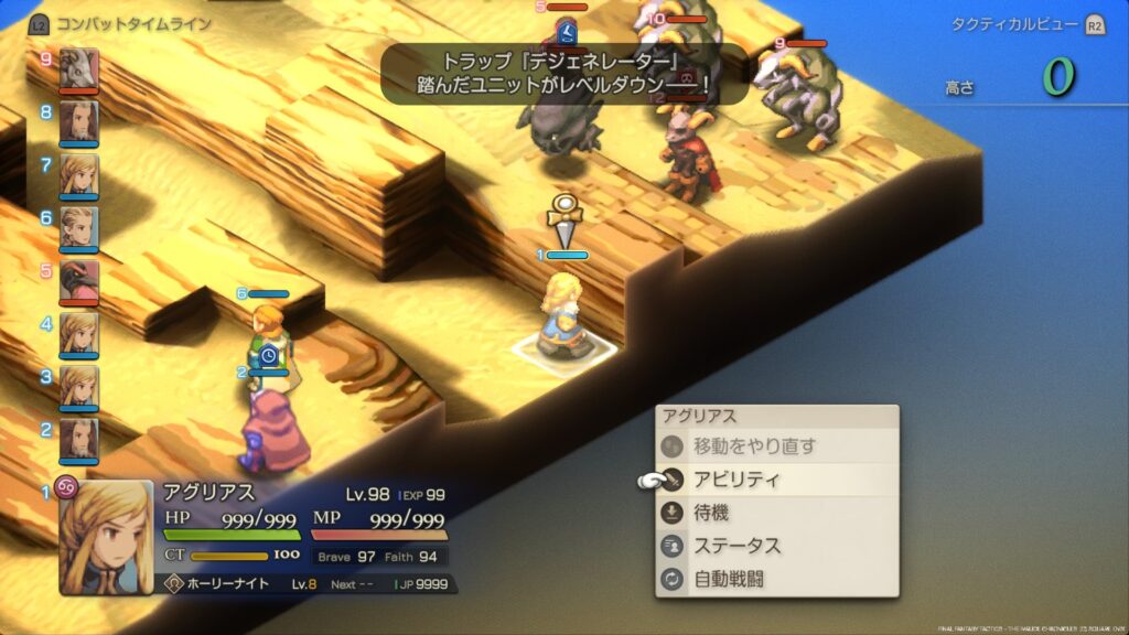 HP999、MP999、物理攻撃力99、魔法攻撃力99、スピード50、Brave97、Faith94でオールカンスト。