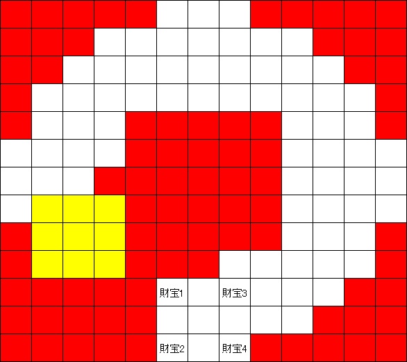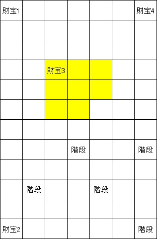 財宝は決まったマスに埋まっており、アイテム士の「アイテム発見移動」をセットした状態で財宝マスを踏むと発掘出来ます。