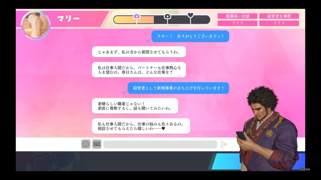 アロハリンクス(春日で挨拶)や食事コンプはガッツリやり込まなくてもOK。無視せずメインストーリーと並行して適宜進めるくらいで充分。