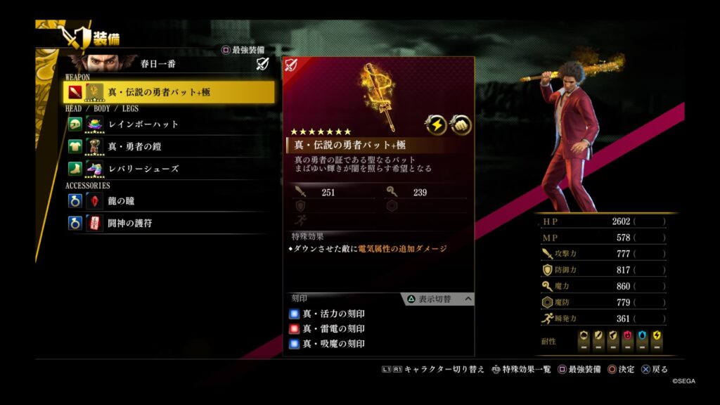 ドーピングアイテムが貯まっているのであれば春日にマジックアッパー、桐生ちゃんにアタックアッパーを与えましょう。