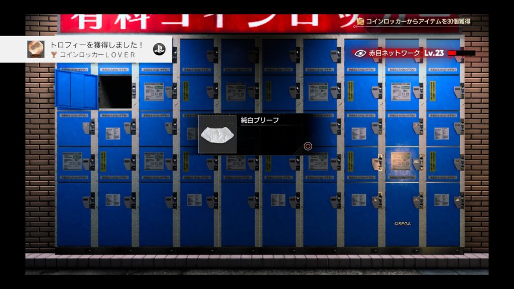 今回は「コンタクトレンズ」というアイテムを装備すると、落ちているコインロッカーの鍵がマップに表示されるようになるので収集はかなり楽ちんちんです。助かる。