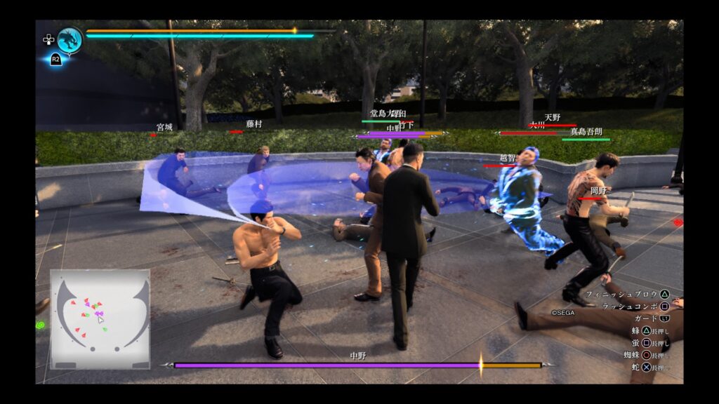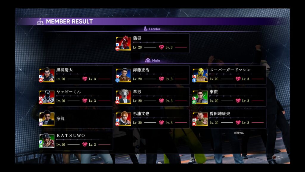 ゲイリーバスターホームズ、秋元くん、上山、ムナンチョ、曽田地、権田原組長といった歴代作品の名サブキャラたちとチームを組んで戦えるどころか、実際に操作できてしまいます。おまけでキムタクが如くから海東さんや杉浦や東も参戦。
