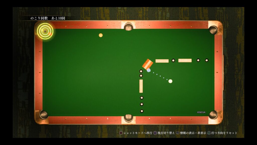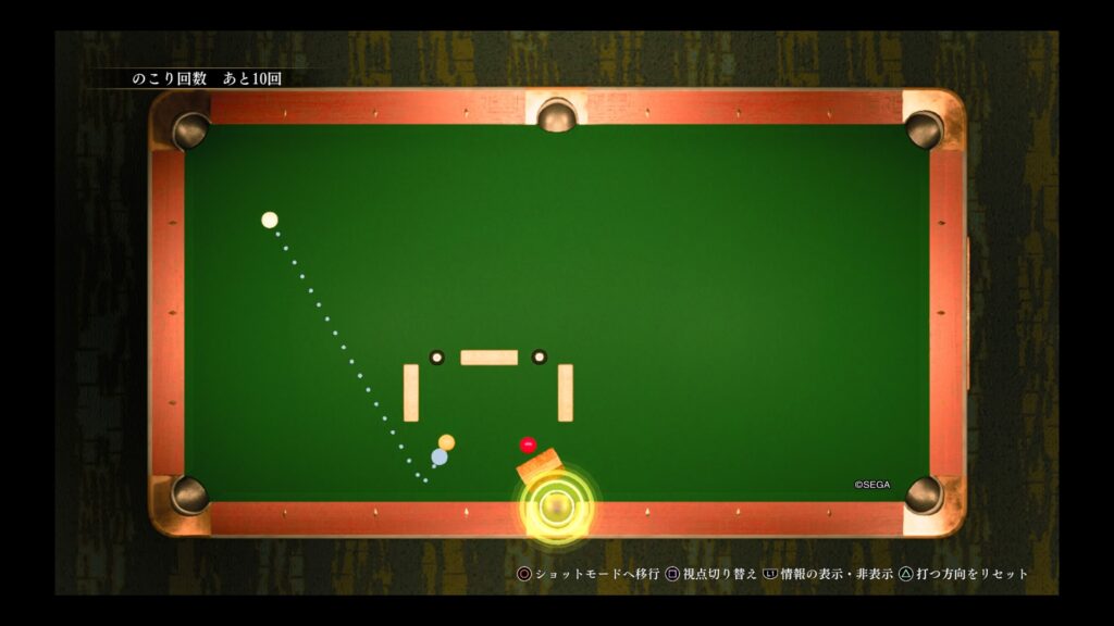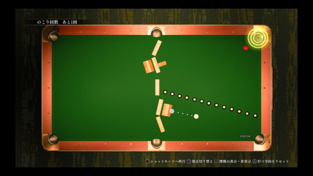 レビュー記事の方でも書きましたけど、ビリヤードを入れるなら難易度緩和アイテムを置いて欲しいですよ。伝説のキューとか。毎度毎度難しすぎんねん。