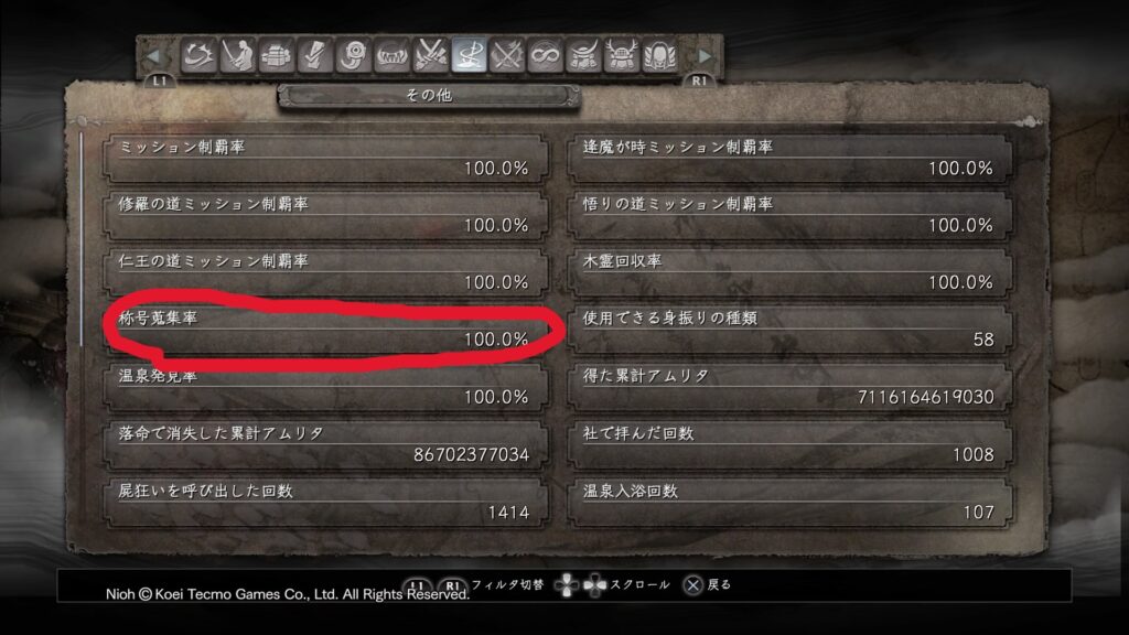 PS4/PS5/PC(Steam)で好評発売中の「仁王」にて、称号恩恵のコンプリートを目指す攻略記事です。