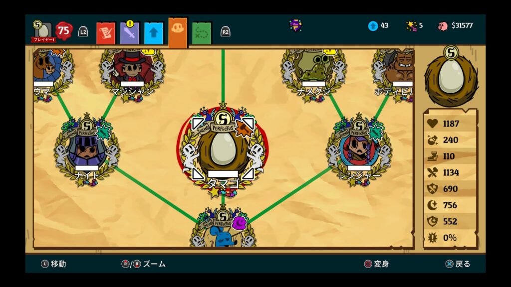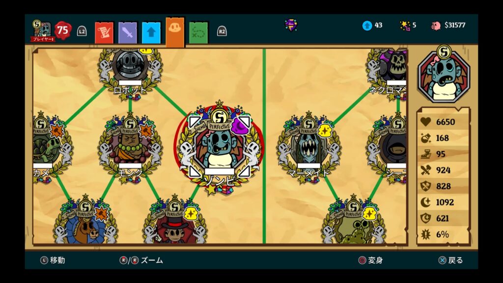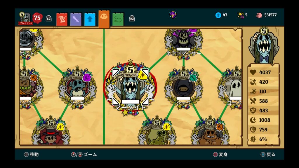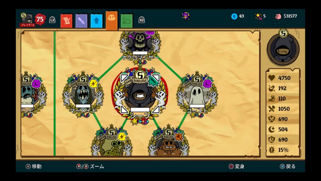 ゾンビで習得可能な “カニバリズム” は貴重なHP回復手段として最後まで使えるので、なるべく早くゲットしたいところ。