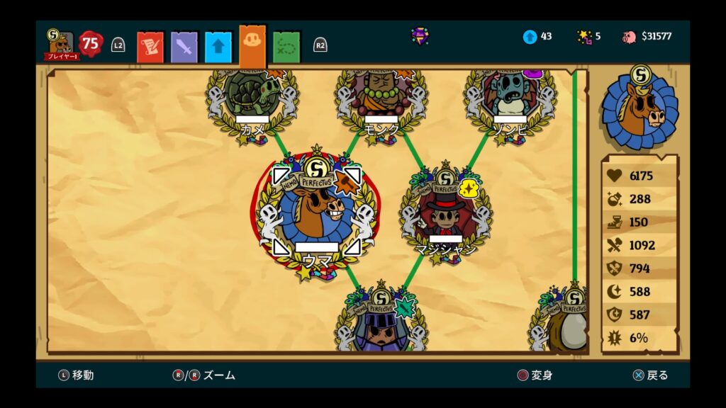 - 韋駄天 … 特に足の遅いフォームやチャージで移動速度が落ちるフォームほど手放せなくなる。鈍足ナメクジが敵として登場するダンジョンでも欲しいが、どうしても枠が無ければ回避連打でも。