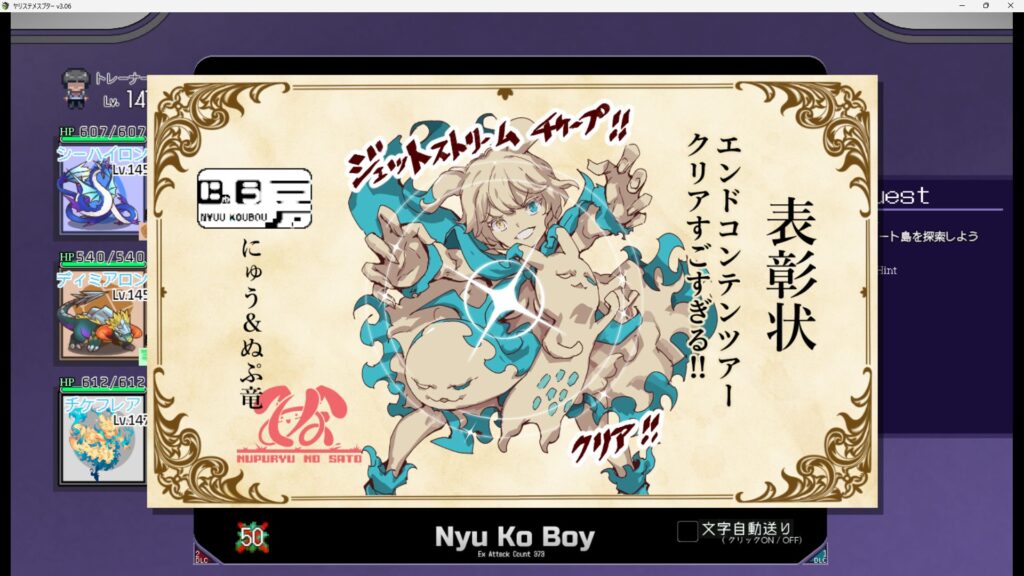 開発者のぬぷ竜さんと戦えて勝つとトロフィーが貰える