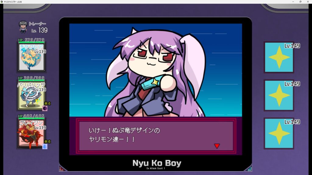 - 敵のレベルはこちらと同レベル