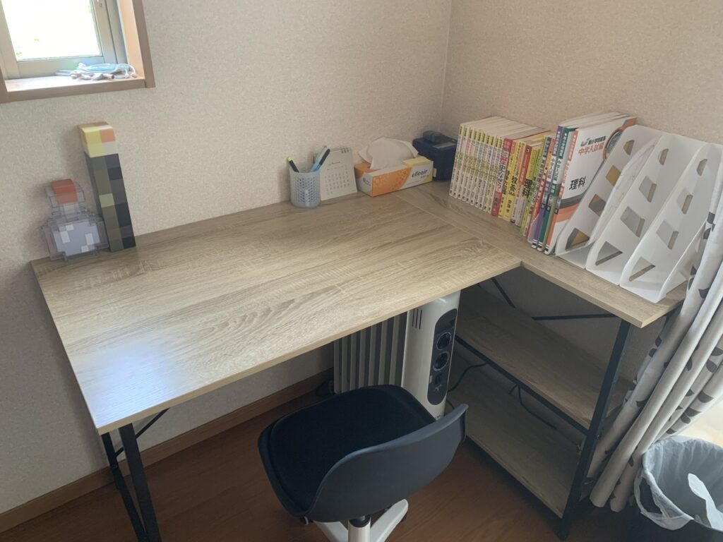 私の寝室を明け渡して、簡易的なL字デスクを購入しました。
