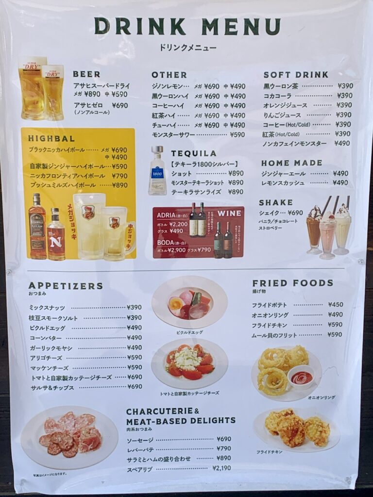 ドリンクもなかなか良心的。メガがしっかりお得でいいですね。